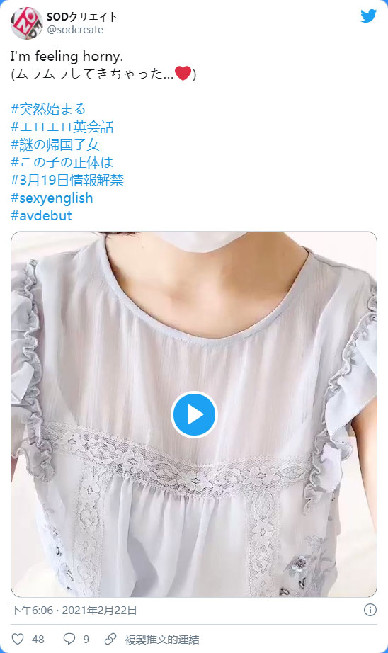 戴着口罩,看不出长相,这位新人只用字正腔圆的英文说了“I’m feeling horny.(我好想搞啊)”?